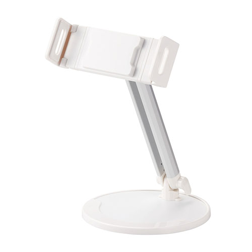 フレキシブルアームとボールジョイントでタブレットを自在に角度調整できる卓上フレキシブルアームスタンドです。 タブレットをしっかり固定し自在に角度調整できるため、キッチンやリビングでの使用に最適です。 およそ5.0~12.9インチのスマートフォン、タブレットに対応しています。 フレキシブルアームで、機器本体との角度や位置を好きな位置に調整して使用できます。 タブレットホルダー部は、360度回転できるので、Web閲覧や動画視聴等シーンに合わせて縦向き、横向きのお好きな角度で使用できます。 スタンド底面の起毛生地により、キズをつけずソフトに設置できます。 本製品の構造上、アームの角度によってはスタンド状態を維持することができない場合がありますのでご了承ください。 仕様: ●材質:本体:ABS、アルミニウム ●外形寸法:アーム部全長:約195mm、台座部:直径約150mm ●重量:約750g ●カラー:ホワイト ●対応機種:ディスプレイサイズが5インチ以上12.9インチ以下のスマートフォン、タブレットPC ●角度調節:○ ●付属品:六角レンチ