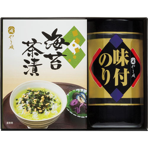 有機丸大豆醤油や天然素材を使ったたれで調味したコクと旨味のある味付海苔と、さっぱりとした後味の海苔茶漬けのセットです。